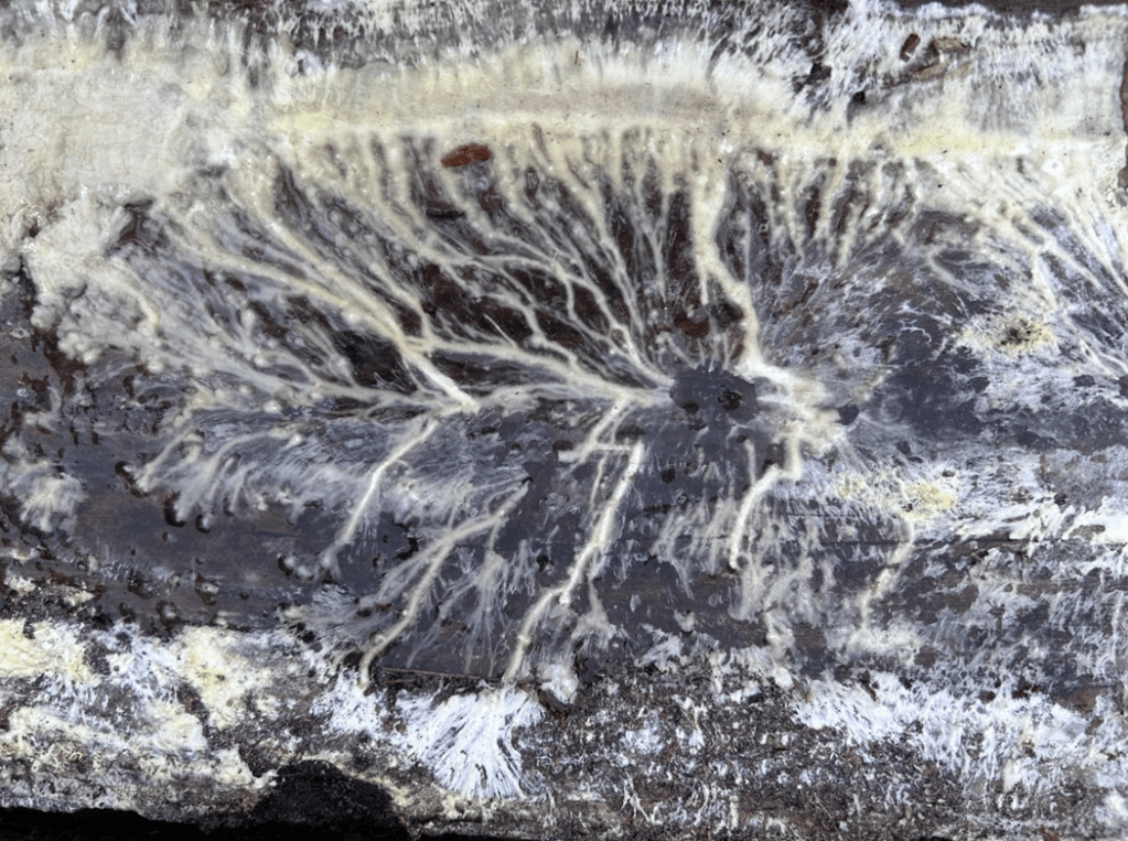 These threads go in search of water, nutrients, and food. They also work in many cases with other plants root systems, reaching those nutrients the roots are unable to reach or make use of – these threads assist the fungi in breaking down available sugars and water, that the trees or plants roots cannot synthesize alone. Known as the Wood wide web (WWW) they will chemically communicate with other fungal threads and indeed the hosts of them, those trees and plants. Alerting then to attacks, drought, sources of food and water. All done silently (to us) and right beneath our feet in many cases.